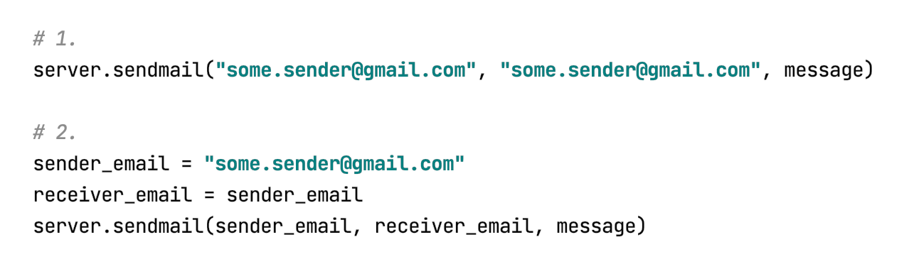 some.sender@gmail.comis a sender- that the receiver is the same as the sender (we send the email to ourselves). I’d even extract that assignment into